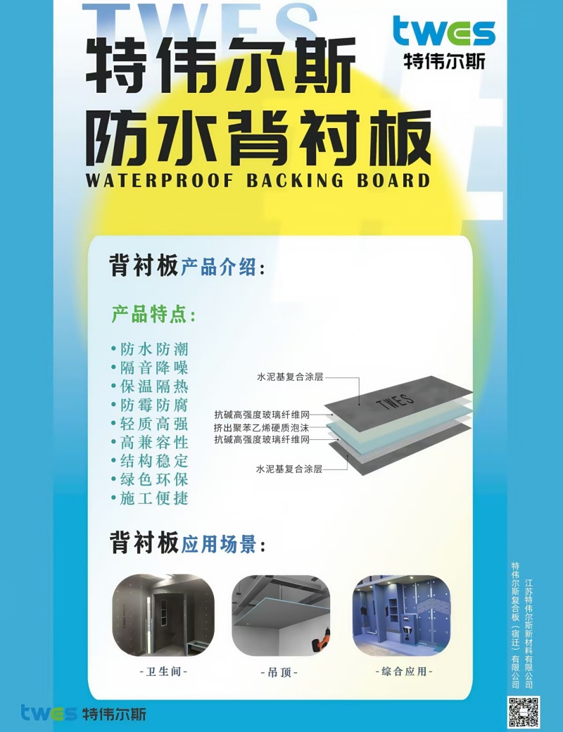 防水背襯板是以防水背襯板為核心材料的濕室防水解決方案,主要用于建筑的墻面與地面,作為瓷磚、石材等裝飾材料的背襯,提供穩定的支撐并有效防止水分滲透,避免受潮引發的發霉、變形等問題。